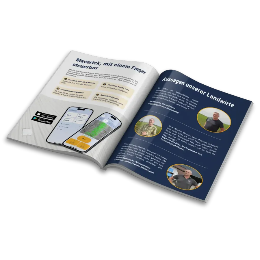 Unsere Maverick-Broschüre erklärt, wie dieser vollautonome Roboter Ihre Felder navigiert, Unkraut präzise entfernt und Ihnen bis zu 80% an Handarbeitsaufwand beim Jäten einspart.